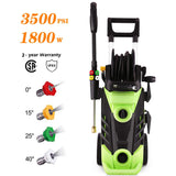 - 【1800W GREAT POWER】Packed with a powerful 1800 Watt motor, our electric power washer generates up to 3500 PSI water pressure and 2.60 GPM water flow for maximum cleaning power, this high pressure washer will remove tar and grease from concrete, heavy stains, oil stains, rust from steel, caked mud on equipment, and other stubborn gunk and grime, gain cleaning power in your hands easily.