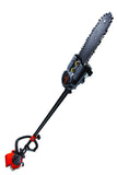 - Long reach: designed with a 7-foot Extension pole and 8-inch Bar and chain. With operator's Height in consideration, the saw can cut limbs up to 12 feet high, no ladder necessary!