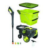 Details: Build your "bucket list". Get ready to cross a ton of outdoor chores off your home improvement list with the Sun Joe ion spx6001c-xr cordless pressure washer. Only ion gives you the room to roam, courtesy of the powerful onboard, rechargeable 40V 5.0-Ah lithium ion battery, to take your cleaning tasks on the road - or anywhere power & water are at a premium. Perfect for light duty tasks like cleaning the cabin, deck, boat, RV or a host of chores around the house, The innovative, top-loading detachable bucket design fills quickly with fresh water, or can be connected for continuous use with a garden hose. The spx6001c-xr pressure washer's self-priming pump provides superior performance & ease of operation, while ion's exclusive pressure select technology lets you choose the perfect pressure to suit the cleaning task to tackle everything from siding to sidewalks, to porch & patio furniture, & much more. Simply select from among the four quick-connect tips or soap sprayer attachment to customize your cleaning results, & put the power of iON to work on your outdoor cleaning projects.