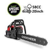 Yiilove COOCHEER 20" 58CC Gas Powered Chainsaw 2 Stroke Handed Petrol Gasoline Chain Saw for Cutting Wood with Tool Kit (Upgraded-58CC-Red)